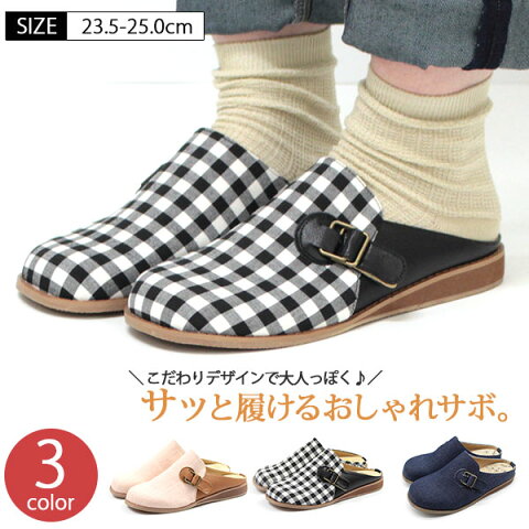 【送料無料】 サンダル レディース 23.5-25.0cm 靴 女性 サボ ペニーレイン PENNY LANE 1196 かわいい ギンガムチェック ストライプ デニム おしゃれ 人気 クロッグ 室内履き 快適 脱ぎ履き簡単 玄関 ベランダ バルコニー コンビニ 普段履き デイリー かかとなし シューズ